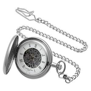 With its brushed silver-plated brass Hunter case, matching curb chain, and sleek skeletal dial, the Charles-Hubert, Paris Satin Finish Mechanical Pocket Watch #3789-W is both classic and contemporary. Its clean cover is perfect for engraving, while 17-jewel movement lends traditional appeal and reliability. Black-tone hands and Roman numerals be noticeable contrary to the outer white ring in the skeleton dial, and provide this timepiece a touch of contemporary style. Protected with a scratch-resistant mineral crystal, this Charles-Hubert original arrives in the deluxe blue giftbox with silver-tone curb chain.