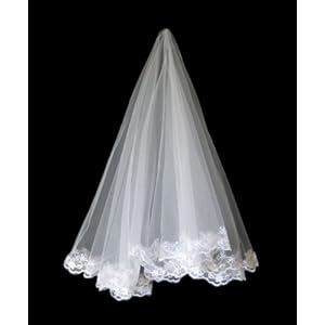 Shop 1t Ivory Beautiful Fingertip Length Wedding Veils with Lace Applique Edge -I04
